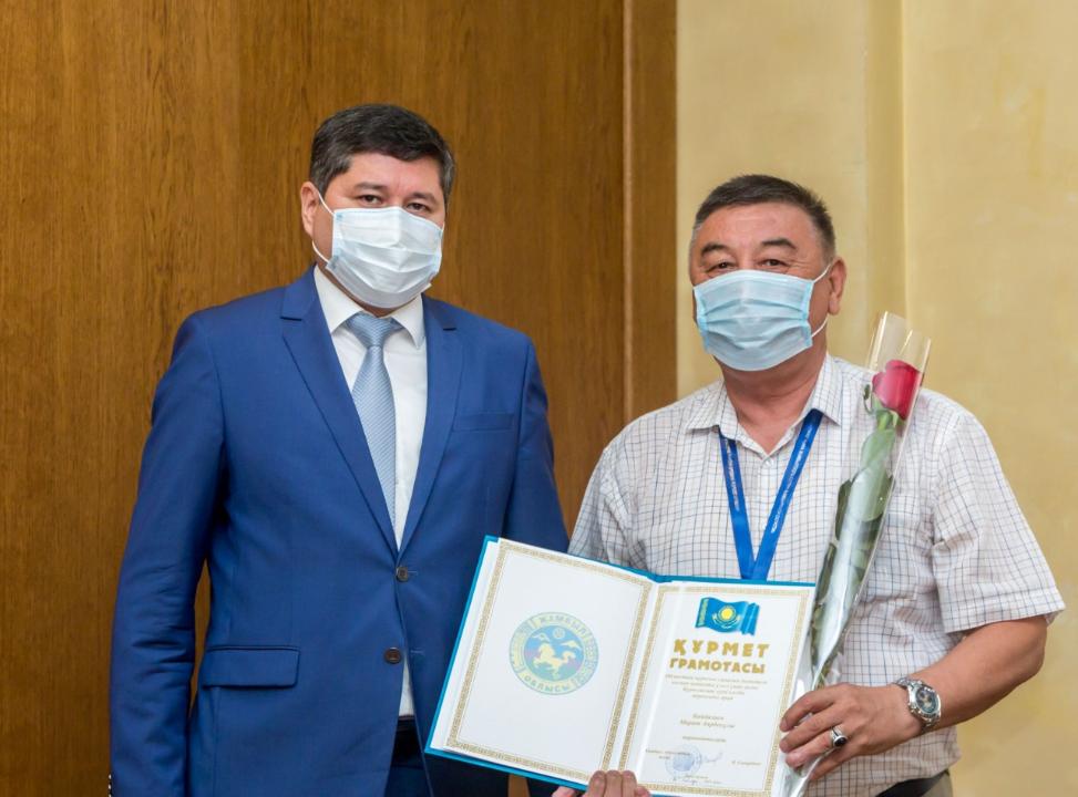 Бұдан кейін марапаттау рәсіміне кезек берілді. Құрылысшылар күні мерекесіне орай «Құрметті құрылысшы» төсбелгісімен еңбек ардагері Жанат Жұмадилдаев, «Рүстем Құрылыс» ЖШСдиректоры Айқожа Қадіров және «КА-СТРОЙ ЛТД» ЖШС жұмысшысы Мұса Таңсықбаев марапатталды. Ал «Құрметті тұрғын үй коммуналдық шаруашылық қызметкері» төсбелгісін «Тараз көлік жолы» цех басшысы болған, бүгінде зейнеткер ардагер Жұмали Орынбаев иеленді. Сондай-ақ жиынға шақырылған өзге қатысушылар облыс әкімінің Құрмет грамотасы және Алғыс хаттарымен марапатталды.