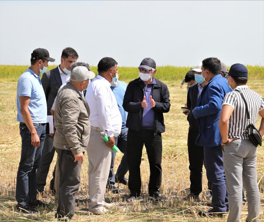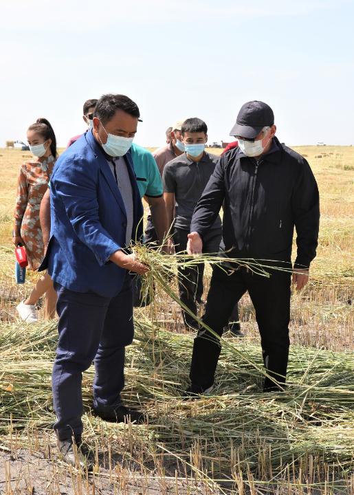 После этого глава региона ознакомился с состоянием сенокосных угодий села Кумозек и пообщался с крестьянами, занятыми в уборочной страде. В целом в районе 744 крестьянских хозяйства, и сегодня большая часть из них трудится на заготовке кормов. В частности, по плану аграрии должны убрать около 25 тысяч гектаров и собрать 134 400 тонн кормов. На сегодняшний день уже скошено 19100 гектаров. По словам руководителя крестьянского хозяйства «Уркер» Бакира Исабекова, сегодня из Мойынкумского района вывозят сено крестьяне Шуского, Кордайского, Меркенского, Т.Рыскулова, Жуалынского, Таласского, Байзакского и Жамбылского районов.