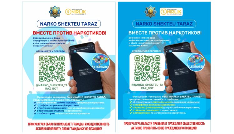 Синтетикалық есірткілердің заңсыз айналымының алдын алу мақсатында Жамбыл облыстық прокуратурасы «NARKO SHEKTEU TARAZ» телеграм-ботын таныстырды.