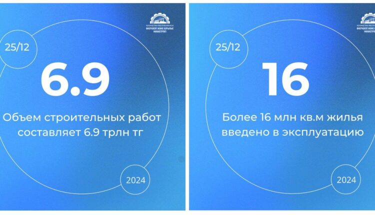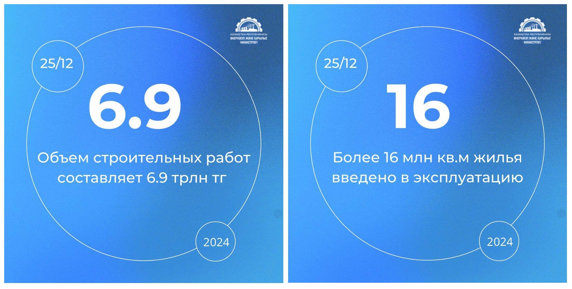 За 11 месяцев т.г. объем строительных работ составил 6,9 трлн тенге, что выше уровня аналогичного периода прошлого года на 10,3%.