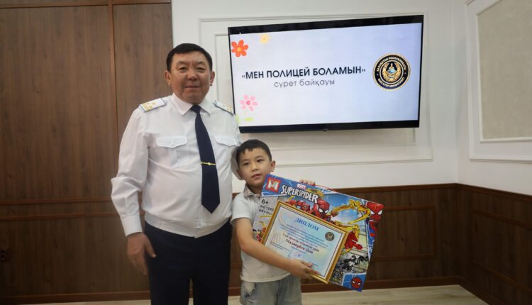В период летних каникул начальник ДП Бакитжан Малыбаев устроил торжественное мероприятие для участников конкурса рисунков под названием «Мен полицей боламын».