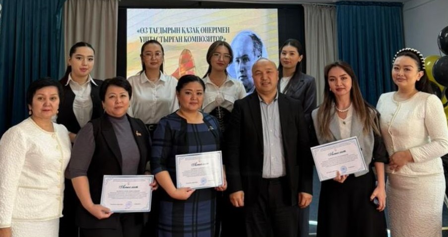 Абай атындағы Жамбыл гуманитарлық жоғары колледжінде Қазақстанның халық артисі, көрнекті композитор Евгений Брусиловскийдің 120 жылдығына арналған «Өз тағдырын қазақ өнерімен ұштастырған композитор» атты музыкалық қобдиша өтті.