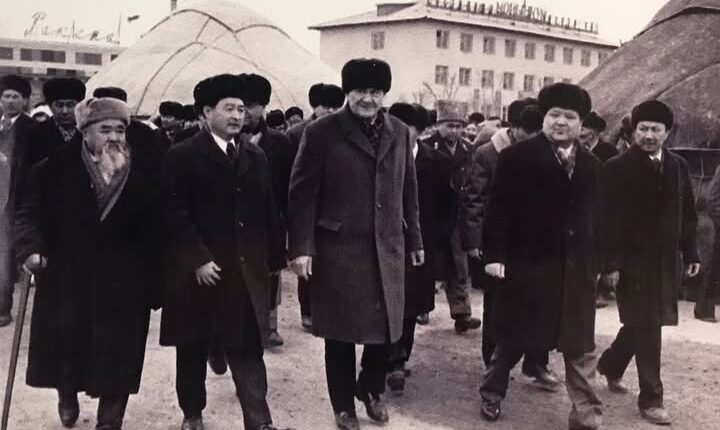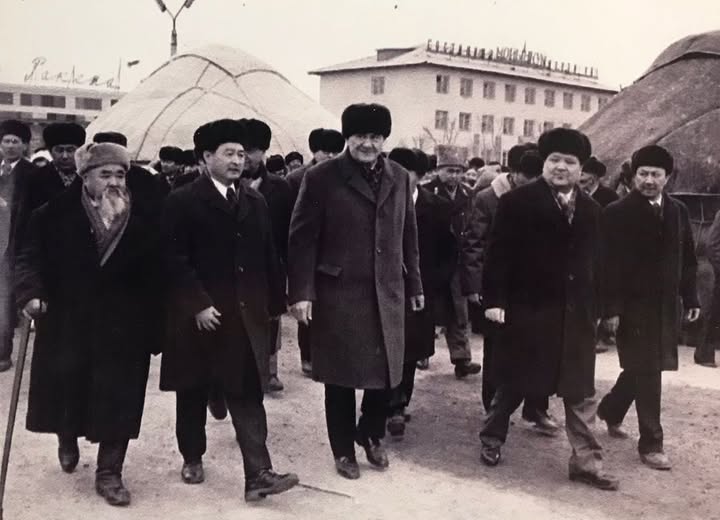 Автокөліктен еңгезердей алып денесі менмұндалап ерекше көзге түскен республика басшысы асықпай, күтіп тұрған аудан басшылары мен екі мәрте Еңбек Ері, шопандардың маршалы атанған Жазылбек Қуанышбаев тұрған топқа бет алды.