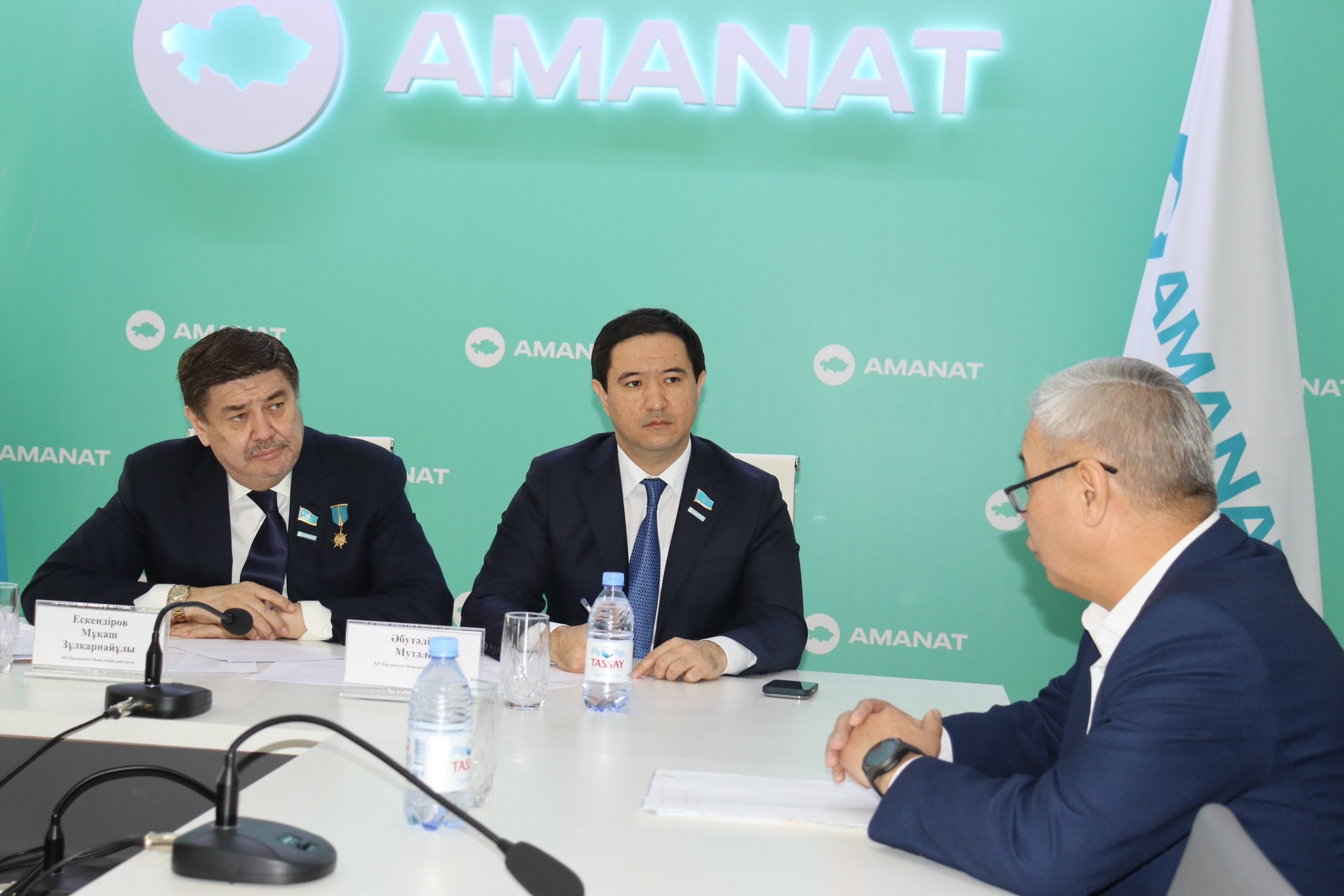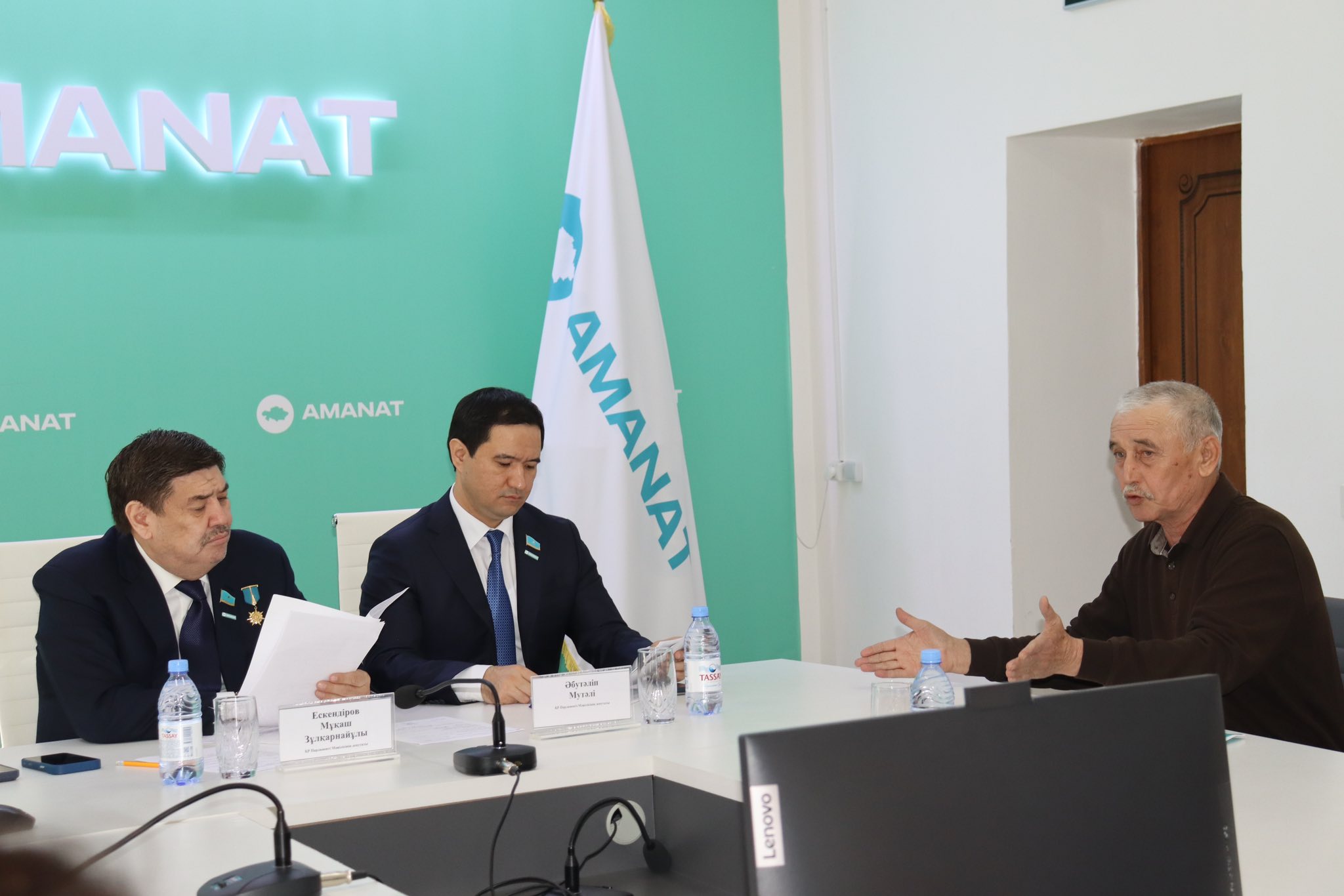 «AMANAT» партиясы Жамбыл облыстық филиалының қоғамдық қабылдау бөлмесінде ҚР Парламенті Мәжілісінің депутаттары Мұқаш Ескендіров пен Әбутәліп Мүтәлі тұрғындарды жеке сұрақтарымен қабылдады.