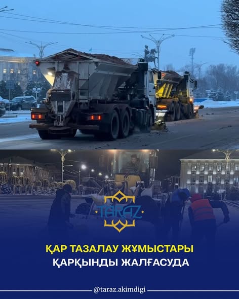 «Жасыл Ел- Тараз» ЖШС 2025-2026 жылдың қысқы маусымында қала аумағындағы автокөлік жолдарында және жаяу жүргіншілер жолдарында (тротуар) төтенше жағдайлар туындамас үшін тазалық жұмыстарын атқаруда.