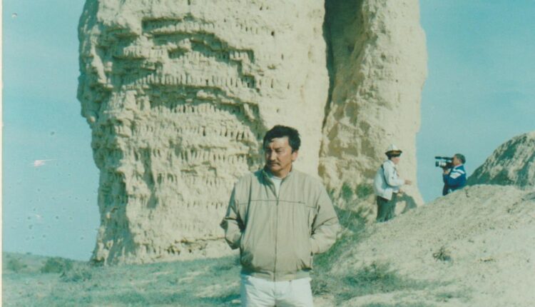 1-сурет: Ақкесене-2006 жыл, мамыр айы. Соңғы планда Қойшығара Салғара телевидениеге сұхбат беріп тұр.