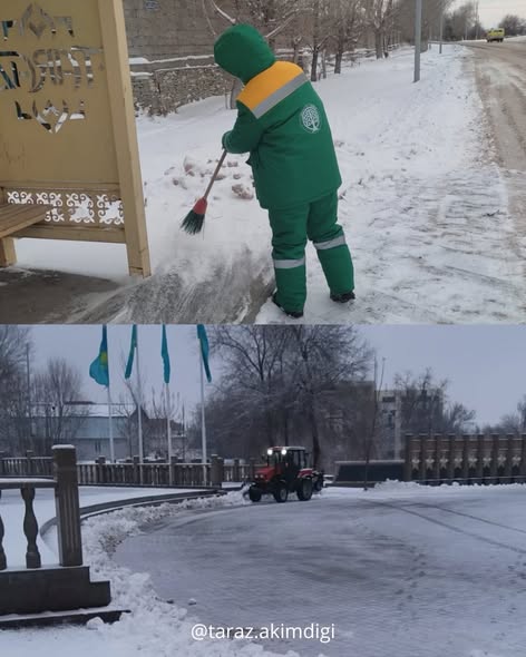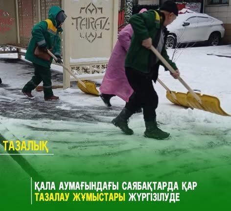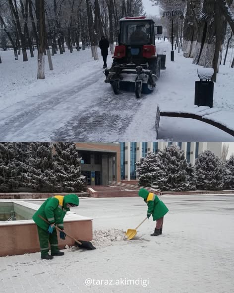 2026 жылғы 28 қаңтарда жауған қарды тазалау, сондай-ақ қала тұрғындарының қауіпсіз әрі қолайлы қозғалысын қамтамасыз ету мақсатында тәулік бойына кесте бекітіліп, таңғы уақыттан бастап арнайы техника көмегімен қар күреу және инерттік материалдар себу жұмыстары жүргізілуде.