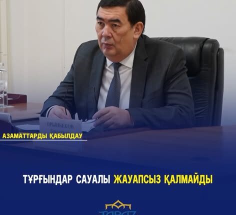 Бүгін Тараз қаласының әкімі Бақытжан Орынбеков тұрғындарды жеке сұрақтарымен қабылдады.