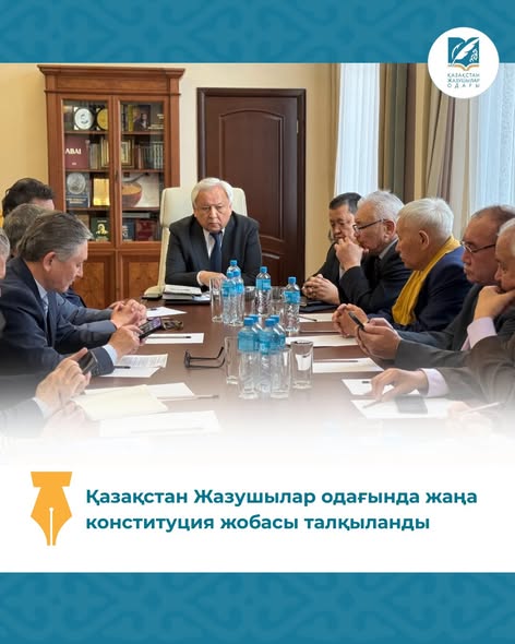 Бүгін Қазақстан Жазушылар одағы Басқармасының Төрағасы Мереке Құлкеновтың төрағалығымен жаңа Конституция жобасын талқылауға арналған жиын өтті.