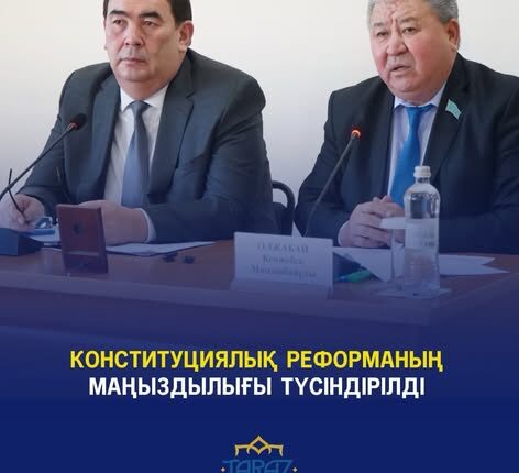 Кездесу барысында еңбек адамдарына жаңа реформаның өзектілігі мен тиімді тұстары жан-жақты түсіндірілді. Сонымен қатар, Тараз қаласы мәслихатының төрағасы Кенжебек Олжабай Ата Заңға енгізілуі мүмкін өзгерістерге жеке-жеке тоқталып, Конституцияны жаңғырту – уақыт талабы екенін атап өтті. Кездесу барысында қатысушылар да саяси науқанға қатысты өз пікірлерін білдірді.