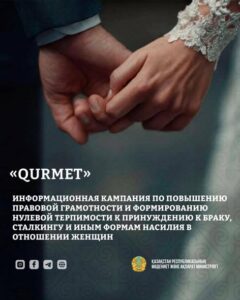 Қазақстанда әйелдерге зорлық-зомбылық көрсетуге қарсы республикалық ақпараттық науқан басталды. Іс-шара некеге мәжбүрлеу, сталкинг және әйелдерге қатысты өзге де зорлық-зомбылыққа төзбеу қағидатын қалыптастыруға және азаматтардың құқықтық сауаттылығын арттыруға бағытталды. Науқан наурыз айының 10-ына дейін жалғасады.