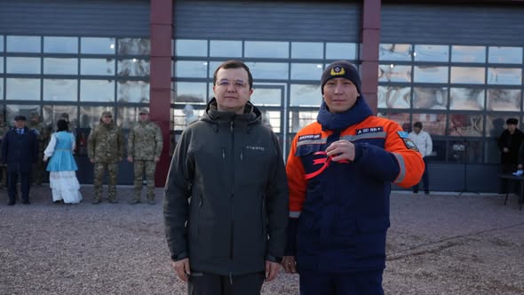 Жиын барысында министр бір қатар азаматтарға марапаттар мен төтенше жағдайға арналған жаңа көліктердің кілтін тапсырды. Атап айтқанда, «Қазақстан Республикасы Төтенше жағдайлар министрлігі құрылғанына 30 жыл» мерекелік медалімен аудан әкімі Ермек Карентаев марапатталса, облысымыздағы бірнеше аудандық өрт сөндіру бөлімдеріне төтенше жағдайға бейімделген арнайы көліктердің кілті табыс етілді. Онымен қатар жаңа ғимараттың символикалық кілтіне №18 өрт сөндіру бөлімінің басшысы ие болды.