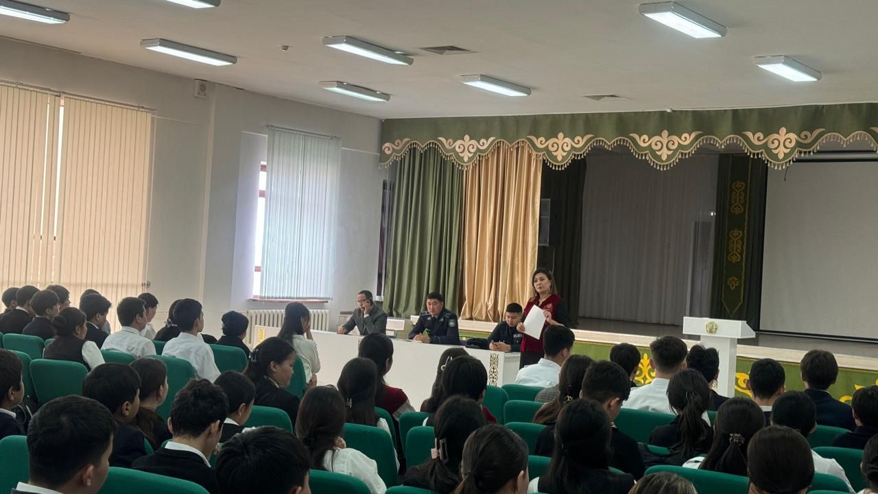 Жамбыл облысы бойынша ҚАЖ департаменті бастығы бекіткен жоспарға сәйкес, №67 мекеме бастығының тәрбие жұмыстары жөніндегі орынбасары, әділет майоры Еркебұлан Бақытжанұлы Садуанов Тараз қалалық №3 мектеп-лицейде 9-11 сынып түлектерімен кездесу өткізді.