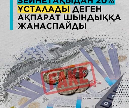 Зейнетақыдан 20% ұсталады деген ақпарат шындыққа жанаспайды