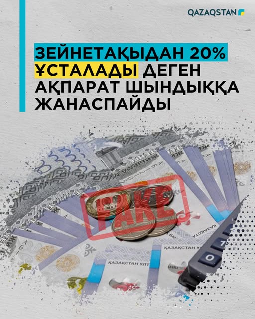 Еңбек және халықты әлеуметтік қорғау министрлігі әлеуметтік желілерде тараған зейнетақы төлемдерінен 20% ұстап қалу туралы ақпараттың шындыққа жанаспайтынын мәлімдеді.