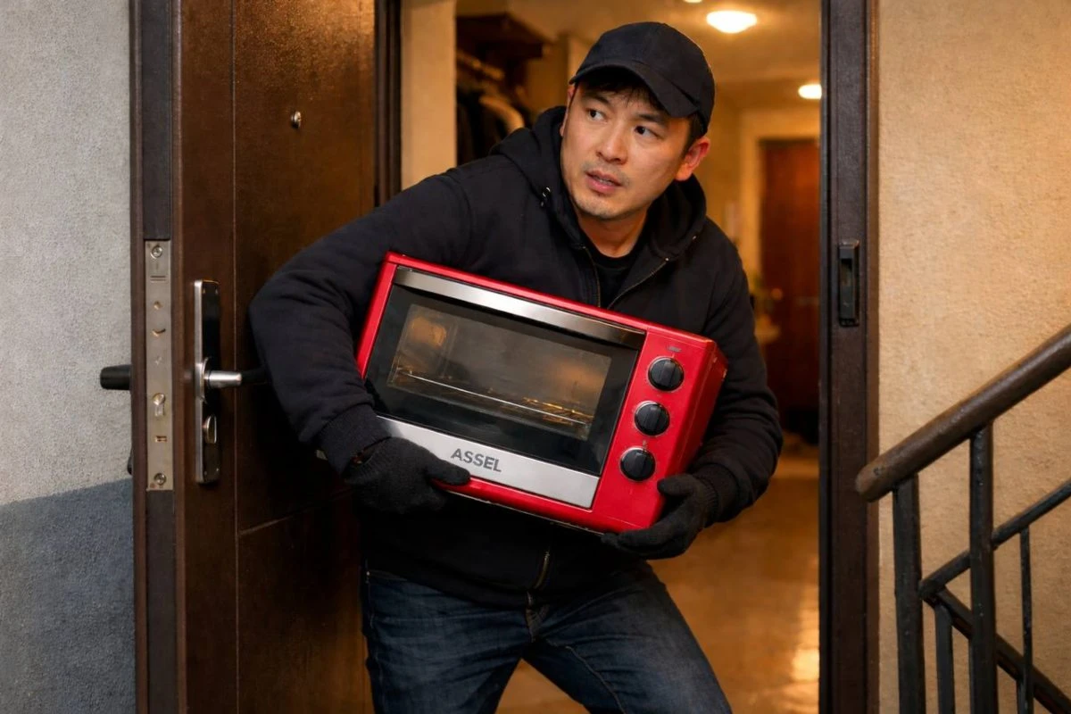 Ал кейін 2026 жылдың қаңтарында ол өзіне алып қалған кілттің көмегімен пәтерге заңсыз кіріп, «ASEL» маркалы пешін ұрлап кеткен.