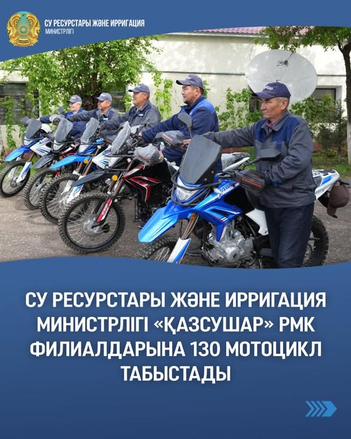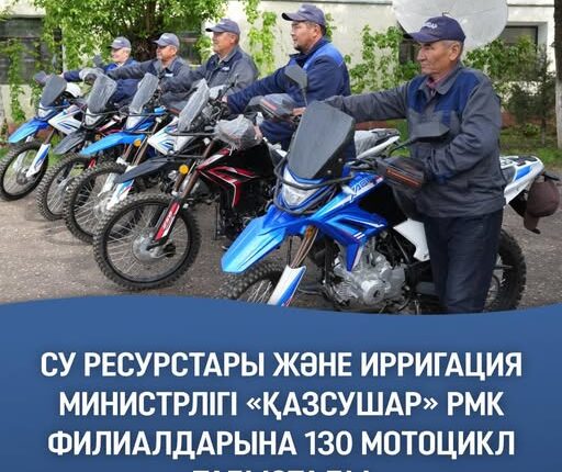 Техникалық паркті жаңарту мақсатында Су ресурстары және ирригация министрлігі «Қазсушар» РМК филиалдарына қозғалтқыш көлемі 250 текше сантиметр болатын 130 мотоцикл табыстады.