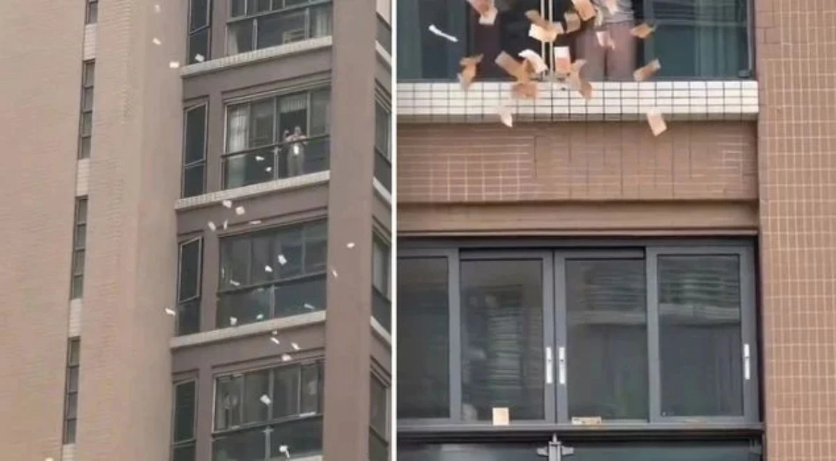 Қытайдың Шаньтоу қаласында сәнді пәтерде тұратын егде жастағы әйел балконынан көшедегі адамдарға шамамен 1 миллион Гонконг долларын (шамамен 60 миллион теңге) шашқан.