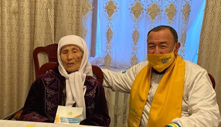 «Жамбыл облысы Мойынқұм ауданы Айдарлы ауылында 102-ге келген, ғасырдан да ұзақ өмір сүрген әжей тұрады. Өткен ғасырдың барлық қызығы мен шыжығын көрген кісі ретінде, өмірі оңай болды деуге ауыз бармайды. Балалары мен немере мен шөберелерінiң ортасында қызығын көрiп отырған бақытты жан. Мұратхан Естаев ол кісіні 10 қаңтарда өтетін сайлауға шақырып, әжеміздің батасын алды.